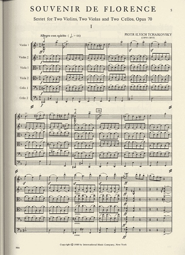 Tchaikovsky, P.I.: (Score) Souvenir de Florence, Op.70 (string sextet)