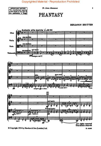 Britten, Benjamin: Phantasy Quartet, Op. 2 for oboe, violin, viola and cello (score)