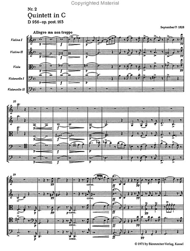 Schubert, Franz (Chusid): SCORE String Quintet in C, D956 (string quintet) Barenreiter Urtext