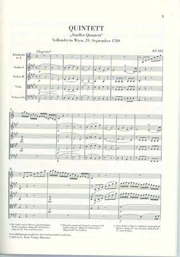 Mozart, W.A. (Wiese, ed): Clarinet Quintet K.581, urtext (score)