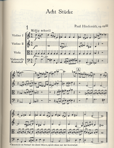 Hindemithe, Paul: SCORE Eight Pieces Op.44#3 (2 violins, Viola, Cello, Bass)