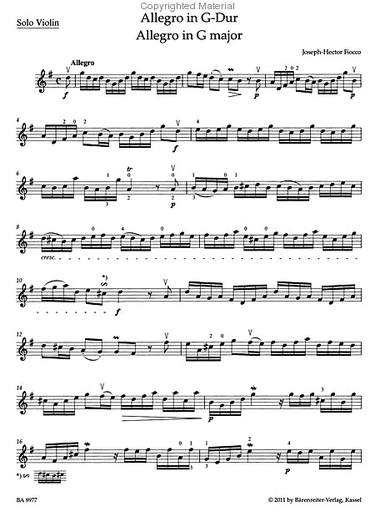 Fiocco, J.H. (Sassmannshaus): Allegro in G Major (violin & piano) Barenreiter Concert Pieces