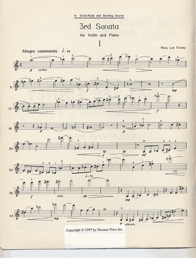 Finney, Ross Lee: Violin Sonata No. 3 in A (violin & piano)
