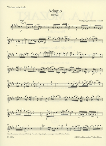 Mozart, W.A. (Mahling): Einzelsatze-Single Movements-K261, 269,373 (Violin and Piano) Barenreiter