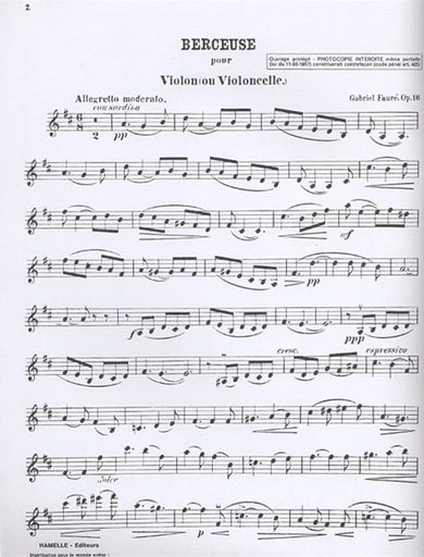 Faure, Gabriel: Berceuse (violin or viola or cello & piano)