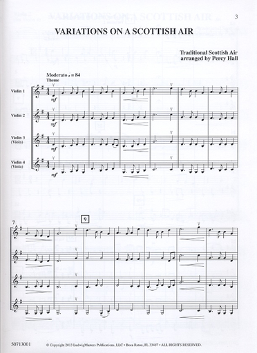 Hall, Percy: Variations on a Scottish Air (4 violins) score & parts