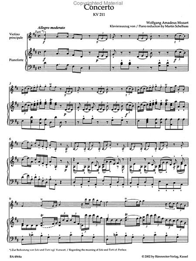 Mozart, W.A. (Mahling): Concerto No. 2 in D, KV 211 (violin/piano) Barenreiter Urtext