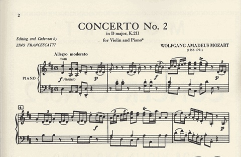 Mozart, W.A.: Concerto #2 in D KV 211 (Violin & Piano)