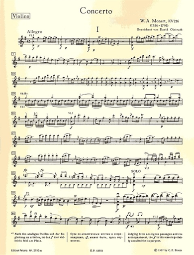 Mozart, W.A. (Oistrach): Concerto No.3 in G Op.64 K.216 (violin & piano) PETERS