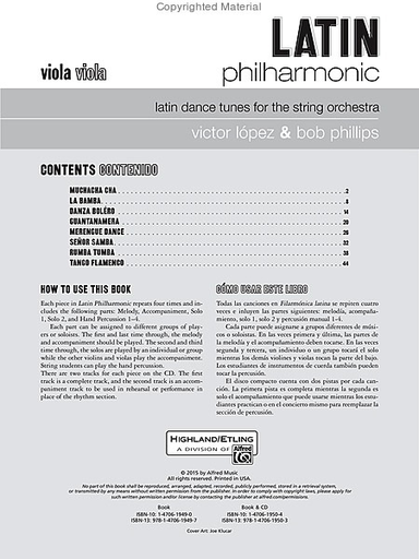 Lopez, V. and Phillips, B.: Latin Philharmonic-latin dance tunes for the stringt orchestra (viola)