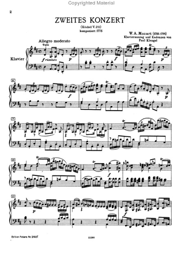 Mozart, W.A.: Violin Concerto No. 2 K. 211 (violin & piano)