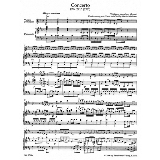 Mozart, W.A.: Violin Concerto in D KV271 (violin & piano) Barenreiter