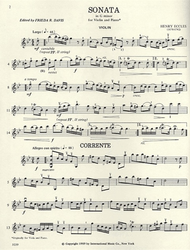 Eccles, Henry: Sonata in G minor (violin & piano) IMC
