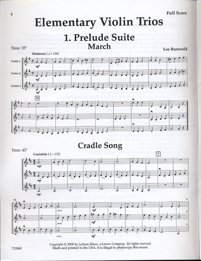 Burswold, Lee: Elementary Violin Trios (parts and score)