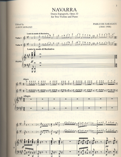 Sarasate, Pablo de (Aaron Rosand, editor): Navarra, Danza Espagnole, Op. 33 (2 violins and piano)