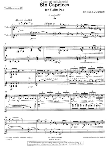Ranjbaran, Behzad: Six Caprices (2 violins)