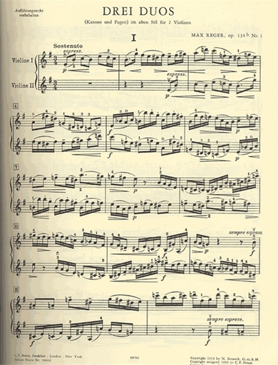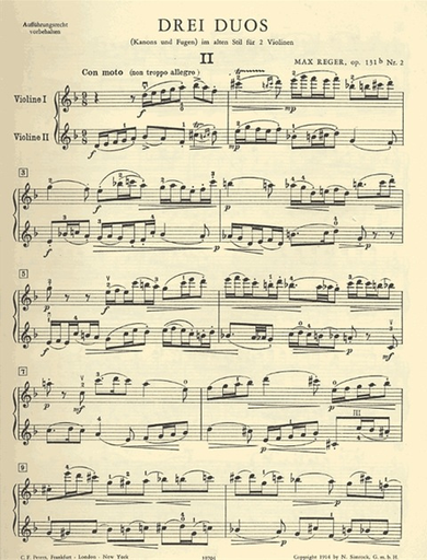 Reger, Max: Canons and Fugues in Old Style Op. 131, No. 1 in e minor (2 violins)