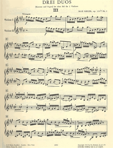 Reger, Max: Canons and Fugues in Old Style Op. 131 No. 3 (2 violins)