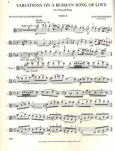 Handoshkin, Ivan: Variations on a Russian Song of Love (L. Davis)