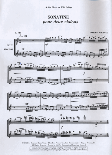 Milhaud, Darius: Sonatine for Two Violins