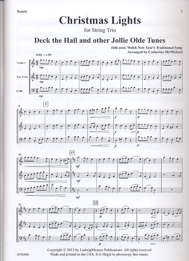 McMichael, Catherine: Christmas Lights for String Trio (with optional violin 2 for viola) score & parts