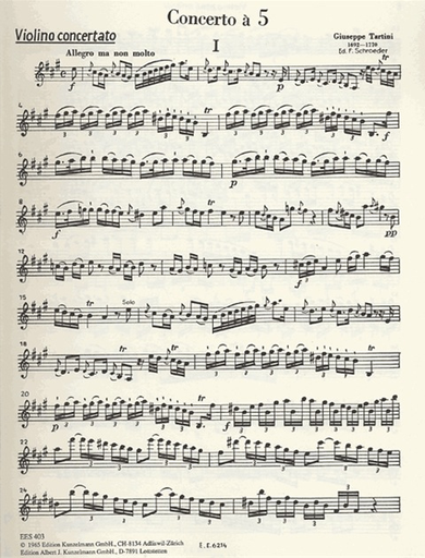 Tartini, G.: Violin Concerto in A Major, D 92 (violin & piano)