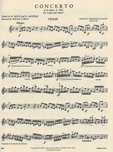 Bach, J.S. (Reitz): Concerto in d minor (violin & piano)