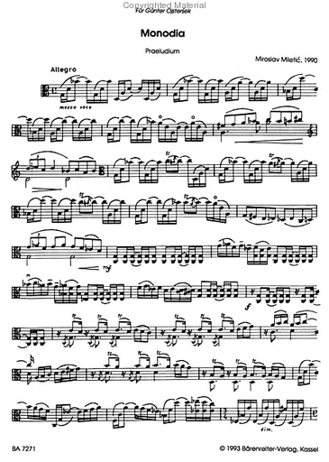 Miletic, Miroslav: Monodia (viola solo) Barenreiter