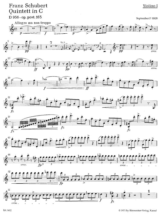 Schubert, Franz (Chusid): String Quintet in C Major, op. post 163, D 956 (string quintet) Bärenreiter Urtext