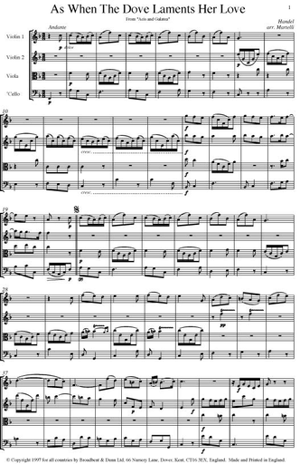 Handel, G.F.: As When the Dove Laments Her Love (string quartet)