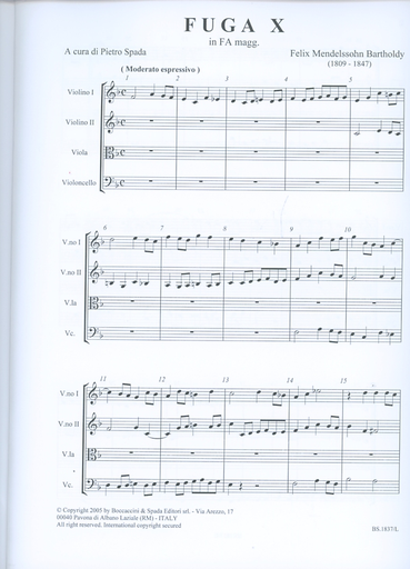Mendelssohn, F.: 12 Fughe per Archi Bk.4 (string quartet score and parts)