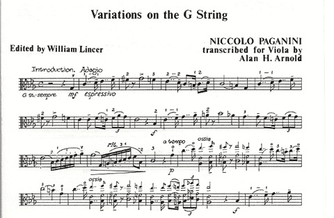 Paganini, Niccolo (Arnold): Variations on the G String (viola)