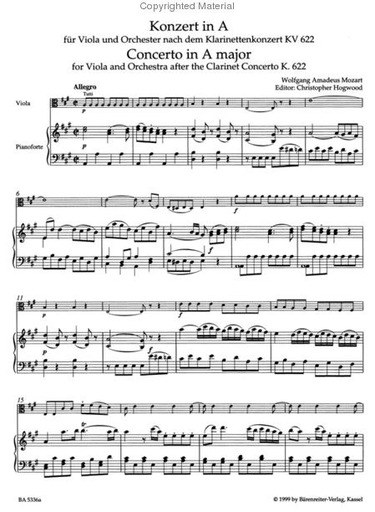 Mozart, W.A. (Hogwood): Concerto in A K622 (Viola & Piano) Barenreiter