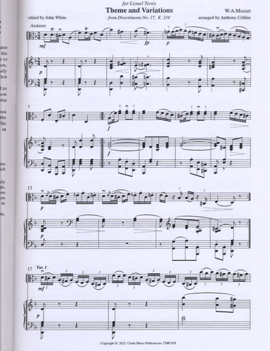 Mozart, W.A.: Theme and Variations from Divertimento No. 17 in D, K.334 (viola & piano)