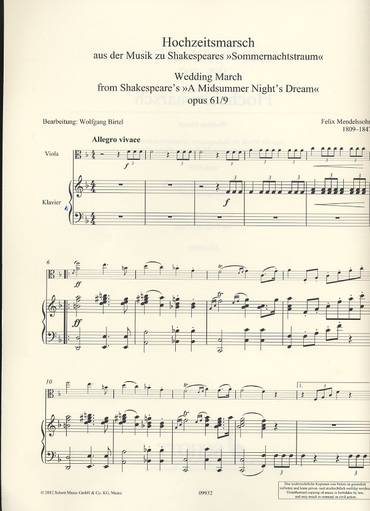 Mendelssohn, F. (Birtel, arr.): Wedding March from ''A Midsummer Night's Dream'', Op. 61 No. 9 (viola and piano)