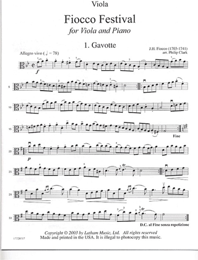 Fiocco, J.H. (Clark): Fiocco Festival for Viola and Piano