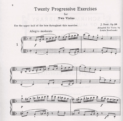 Dont, J: 20 Progressive Exercises for the Viola (with 2nd viola accompaniment)