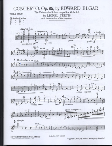 Elgar, Edward: Cello Concerto with solo part arranged for VIOLA