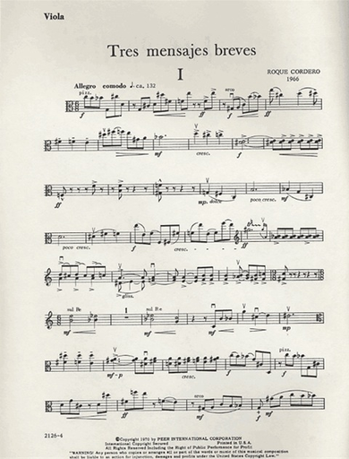 Cordero, Roque: 3 Mensajes Breves (viola & piano)
