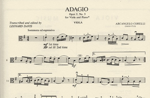 Corelli, Arcangelo: Adagio Op.5 #5 (viola & piano)