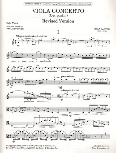 Bartok, B. (Dellamaggiore): Viola Concerto-posth. Revised (Viola & Piano)