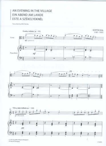 Bartok, B.: An Evening in the Village, Slovak Peasant Dance (viola, and piano)