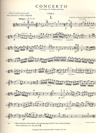 Hoffmeister (Doktor): Concerto in D major (viola & piano) IMC