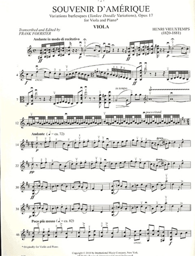 Vieuxtemps, Henri: Souvenir d'Amerique, Yankee Doodle Var., Op.17 (viola/piano)
