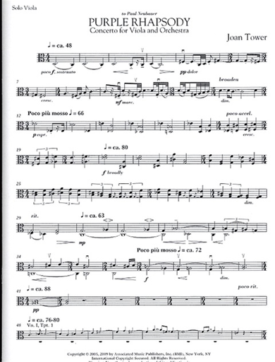 Tower, Joan: Purple Rhapsody Concerto for Viola & Orchestra (viola & piano)