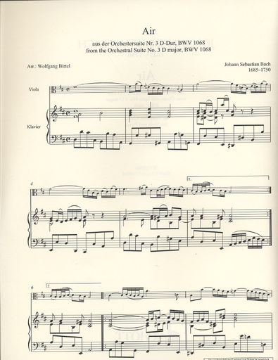 Bach, J.S. (Birtel, arr.): Air in D Major from the Orchestra Suite No. 3, BWV1068 (viola and piano)