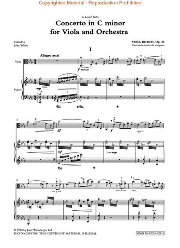 Bowen, York: Viola Concerto in C Minor, Op. 25 (viola & piano)