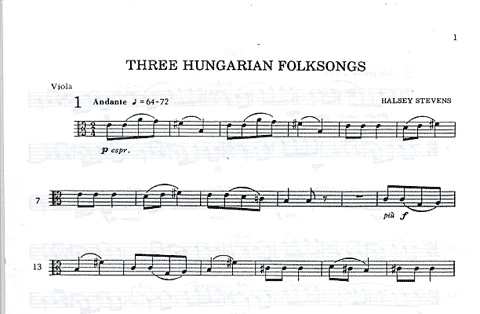 Stevens, Halsey: 3 Hungarian Songs (viola & piano)