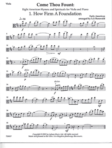 Burswold, Lee: Come Thou Fount: Eight American Hymns & Spirituals (viola & piano)