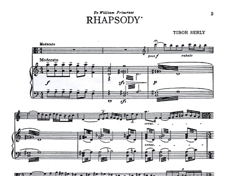 Serly, T.: Rhapsody on Folk Songs Harmonized by Bela Bartok (viola & piano)